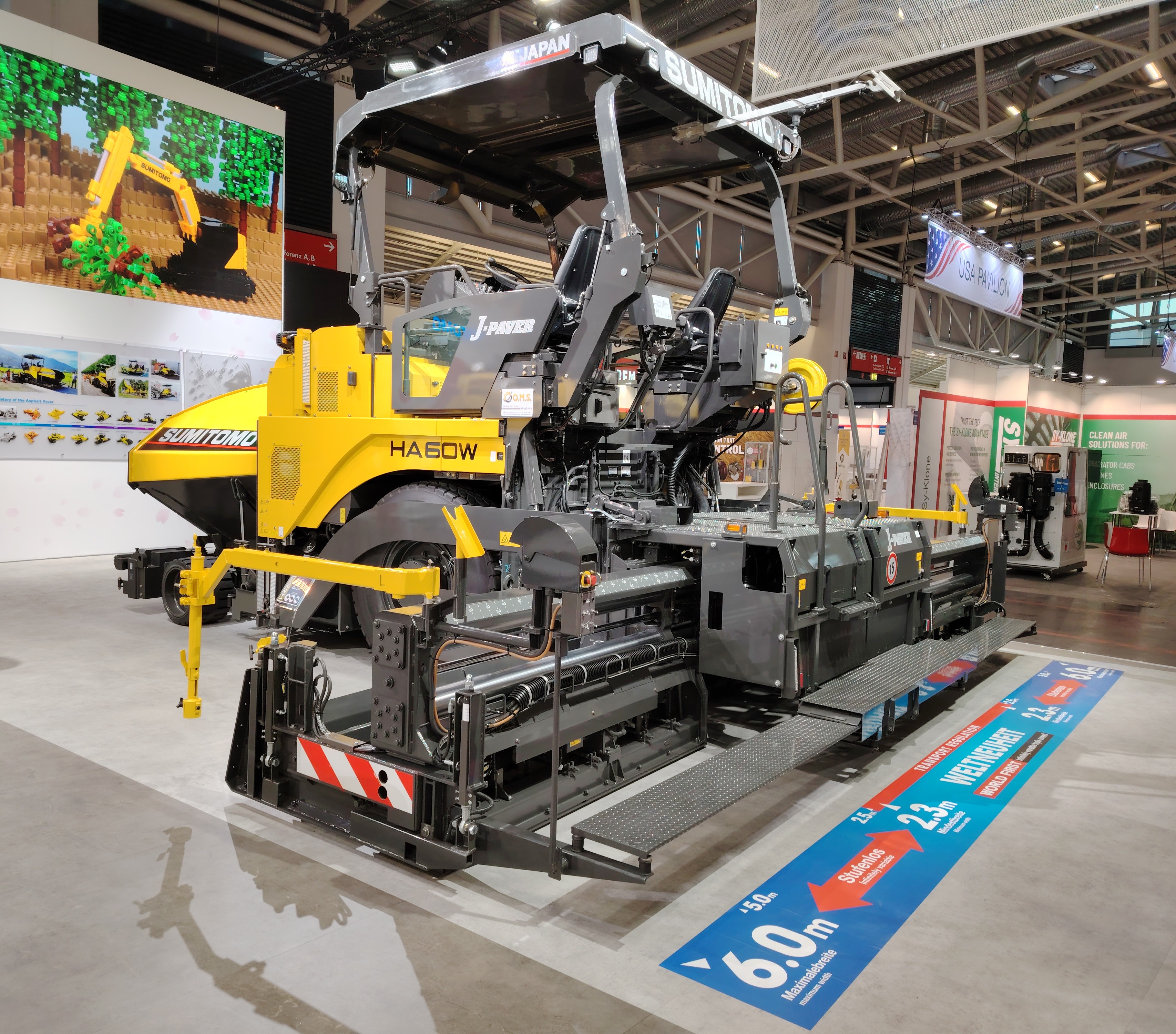 -- SUMITOMO présentait une table avec extension hydraulique de 2m30 à 6m00 permettant de couvrir la majorité des cas de travaux sans rajouter d'élargisseurs mécaniques !