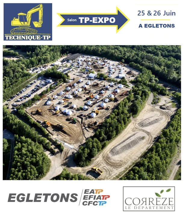 Comme annoncé l’année dernière, nous reconduisons notre salon TP-EXPO en 2026 à EGLETONS. L’idée est de conserver une allée unique gravillonnée et aéré avec de grands espaces de démonstrations. Vous y retrouverez du matériel de terrassement, de VRD, de concassage mais aussi du transport et du matériel forestier.